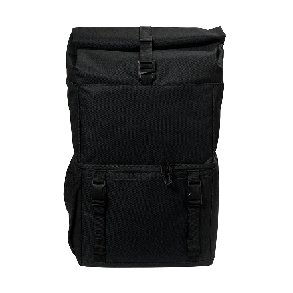 The Port Authority Black 18-Can Backpack Cooler is a cooler that packs everything for an adventure and so much more! Whether you're camping or going on a picnic, this unique backpack has the capacity for 18 cans in the bottom cooler compartment and dry storage space in the upper roll-top compartment. A front slip pocket and buckles add additional storage and carrying options.