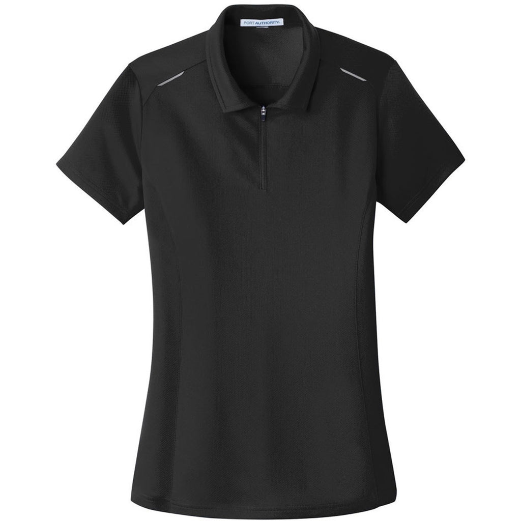 Port Authority Women's Black Pinpoint Mesh Zip Polo