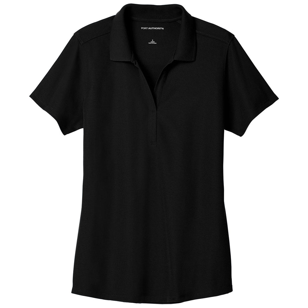 Select the ultimate employee uniform for the women members of your dedicated team by ordering the custom logoed Port Authority Women's Black EZPerformance Pique Polo. Highly durable 100% spun polyester pique fabric resists the types of rips and tears that diminish the quality of other styles of polos. Wear the multi-purpose polo to work and keep it on after the workday ends when you kick back at your favorite restaurant. The sleek Y-neck placket and open hem sleeves put the polo on the highest fashion pedestal. Add a custom logo on the embroidery area to reach more potential customers at industry trade shows.