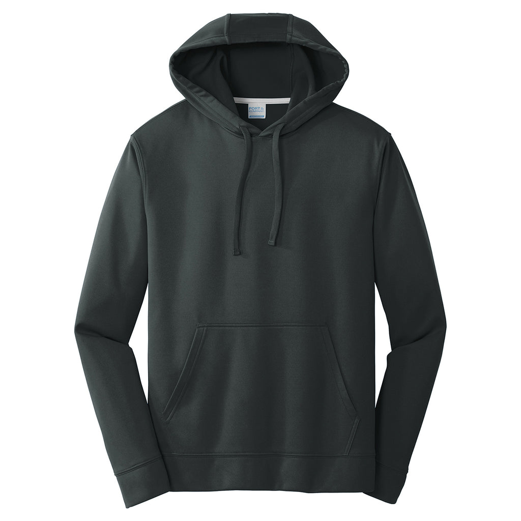 Active professionals love wearing the custom logoed Port & Company Men's Jet Black Performance Fleece Pullover Hooded Sweatshirt. The ideal corporate apparel for wearing to casual company events includes a large imprint area for attaching your printed logo. Rugged polyester withstands the punishment delivered by participating in competitive recreational events throughout the year. Proprietary Dry Zone technology wicks away moisture to ensure comfort all day long. The three-panel hood comes with draw cords to protect your head against cold, windy weather conditions. This hoodie from Port & Company is sure to be a new employee favorite.Highlights