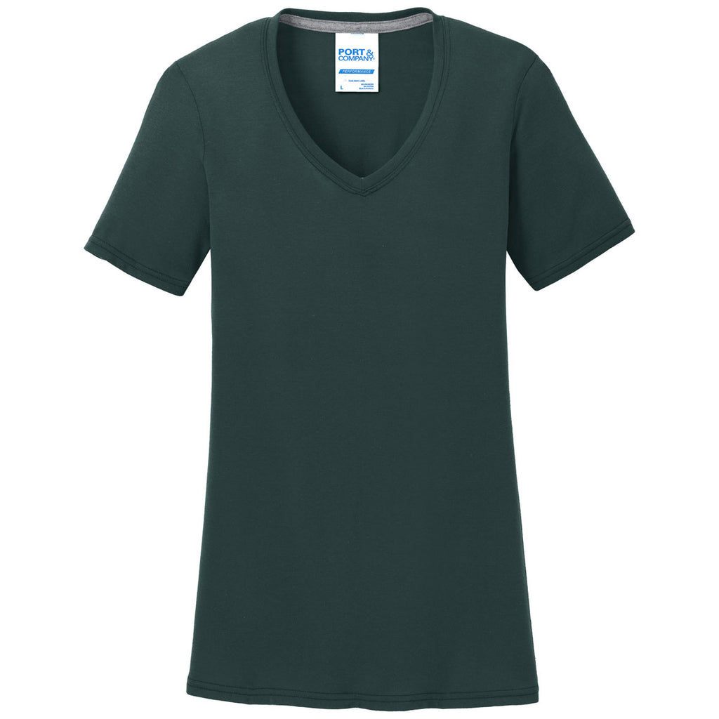 Port & Company Women's Dark Green Performance Blend V-Neck TeeCorresponding Men's Style: Port & Company Men's Dark Green Performance Blend Tee