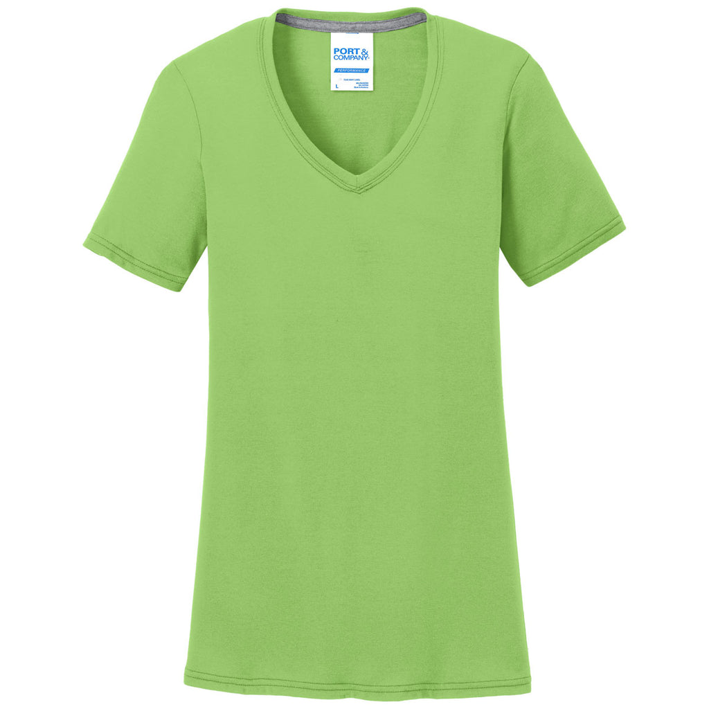 Port & Company Women's Lime Performance Blend V-Neck Tee