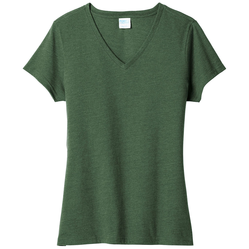 Port & Company Women's Forest Green Heather Fan Favorite Blend V-Neck Tee