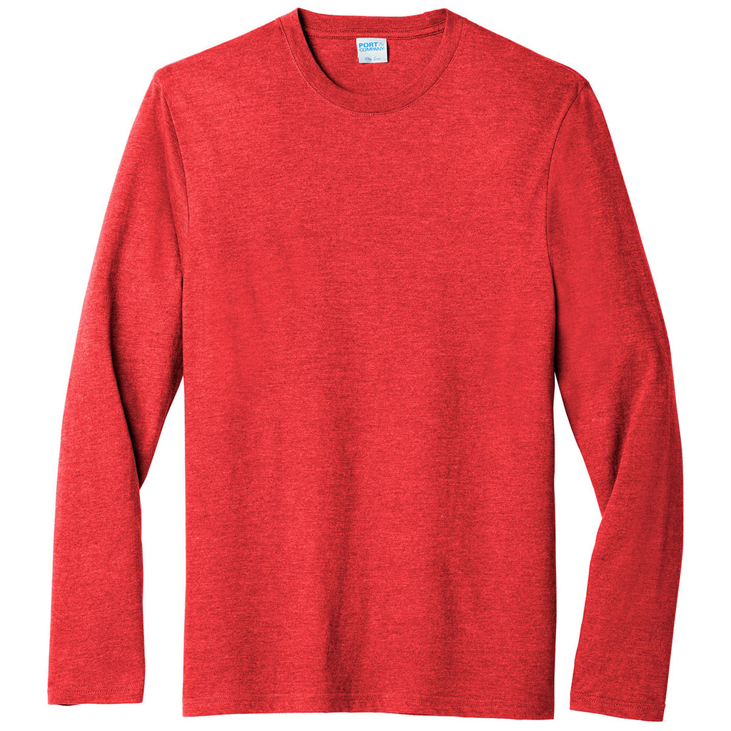 Port & Company Men's Bright Red Heather Long Sleeve Fan Favorite Blend Tee