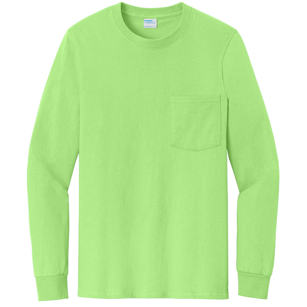 Keep it simple by adding your company's custom logo or design to the Port & Company Men's Lime Tall Long Sleeve Essential Pocket Tee. Great for audiences or employees of all kinds, this wearable long-sleeved tee is made from a comfortable, lightweight fabric and features a chest pocket for added convenience.Highlights