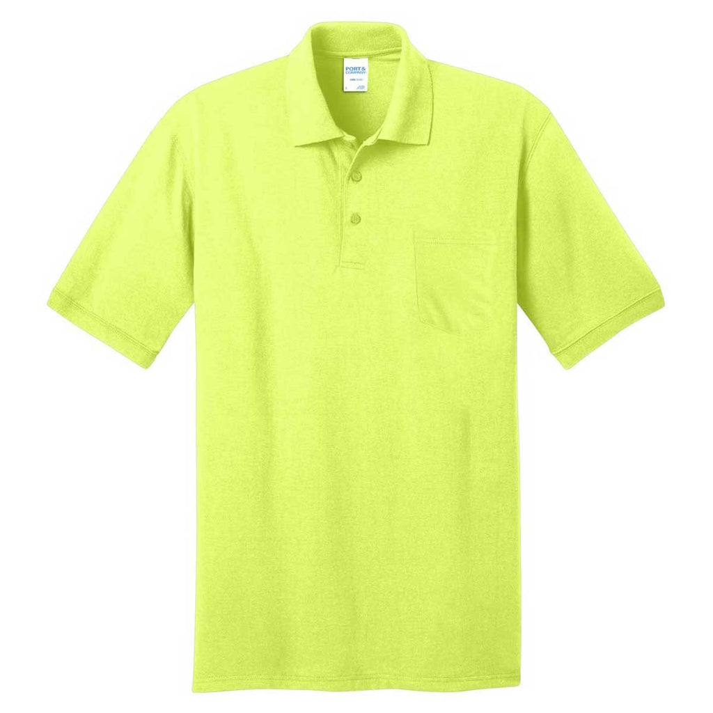 Inspired by minimalist architecture, this Port & Company Men's Safety Green Core Blend Jersey Knit Pocket Polo is a great answer to warm-weather uniforming shirts. It boasts a lightweight and comfortable construction with a balanced cotton-polyester blend. A pocket adds character to this casual polo while a 3-button placket ensures comfort fit. It can be easily paired with contrasting chinos, cargoes or denim for an effortless look and style. Double-needle stitching hem means durability. Spruce up your company's professionalism by having your logo on this polo that lets individuals know who to contact if they're interested in reaching out to your business.Highlights