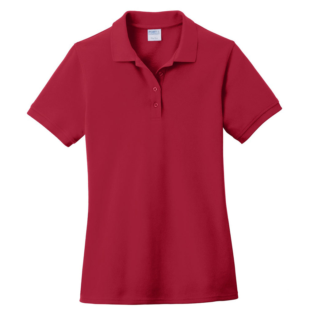 With a built-in resistance to shrinkage, the logoed Port & Company Women's Red Ring Spun Pique Polo contains 100% super soft ring spun cotton to keep you comfortable throughout the day. The stain release finish ensures you feel and look as fresh at the end of the day as you did when you put the pique polo on first thing in the morning. Rib knit collar and cuffs create a visually appealing look that makes you stand out at the next industry trade show. Attach your corporate logo to the large imprint area to promote your company at civic and professional networking events.Corresponding Men's Style: Port & Company Men's Red Ring Spun Pique Polo