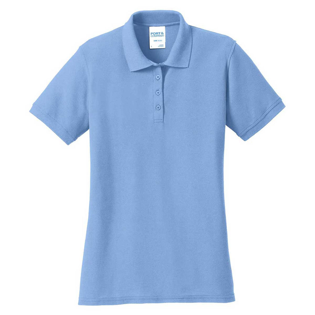 Crafted with a balanced cotton-polyester blend, this Port & Company Women's Light Blue Core Blend Pique Polo brims with classic appeal. A comfortable contoured fit with side seams makes it the perfect option for a girl on the move. Timeless polo details like button placket, dyed-to-match buttons, ribbed collar and cuffs bring sweet appeal and day-long comfort. It features double-needle stitching for durability. Treated with Soil Release finish for easy cleanups. Easily personalize this Port & Company Women's Light Blue Core Blend Pique Polo with your company's logo or motto for use as employee work wear or distributing as corporate promotional merchandise which will unleash a lasting brand awareness campaign.Highlights