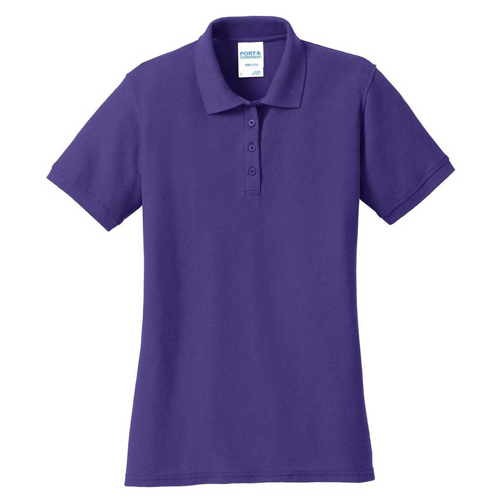 Crafted with a balanced cotton-polyester blend, this Port & Company Women's Purple Core Blend Pique Polo brims with classic appeal. A comfortable contoured fit with side seams makes it the perfect option for a girl on the move. Timeless polo details like button placket, dyed-to-match buttons, ribbed collar and cuffs bring sweet appeal and day-long comfort. It features double-needle stitching for durability. Treated with Soil Release finish for easy cleanups. Easily personalize this Port & Company Women's Purple Core Blend Pique Polo with your company's logo or motto for use as employee work wear or distributing as corporate promotional merchandise which will unleash a lasting brand awareness campaign.Highlights