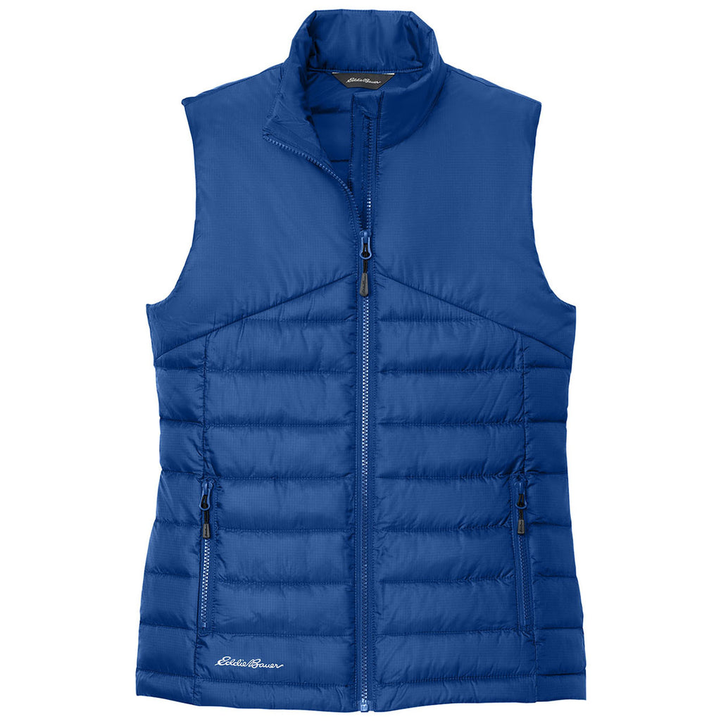 Eddie Bauer Women's Cobalt Blue Quilted Vest with a custom logo is a fun and fashionable way to stay warm. Worn as an outer or middle layer, this vest will keep you warm without creating much added bulk. The mock neck and full zip front make this great for hiking, running, or general day-to-day errands. Place an order today.This product can only ship within the United States, Puerto Rico, Canada, and Mexico.