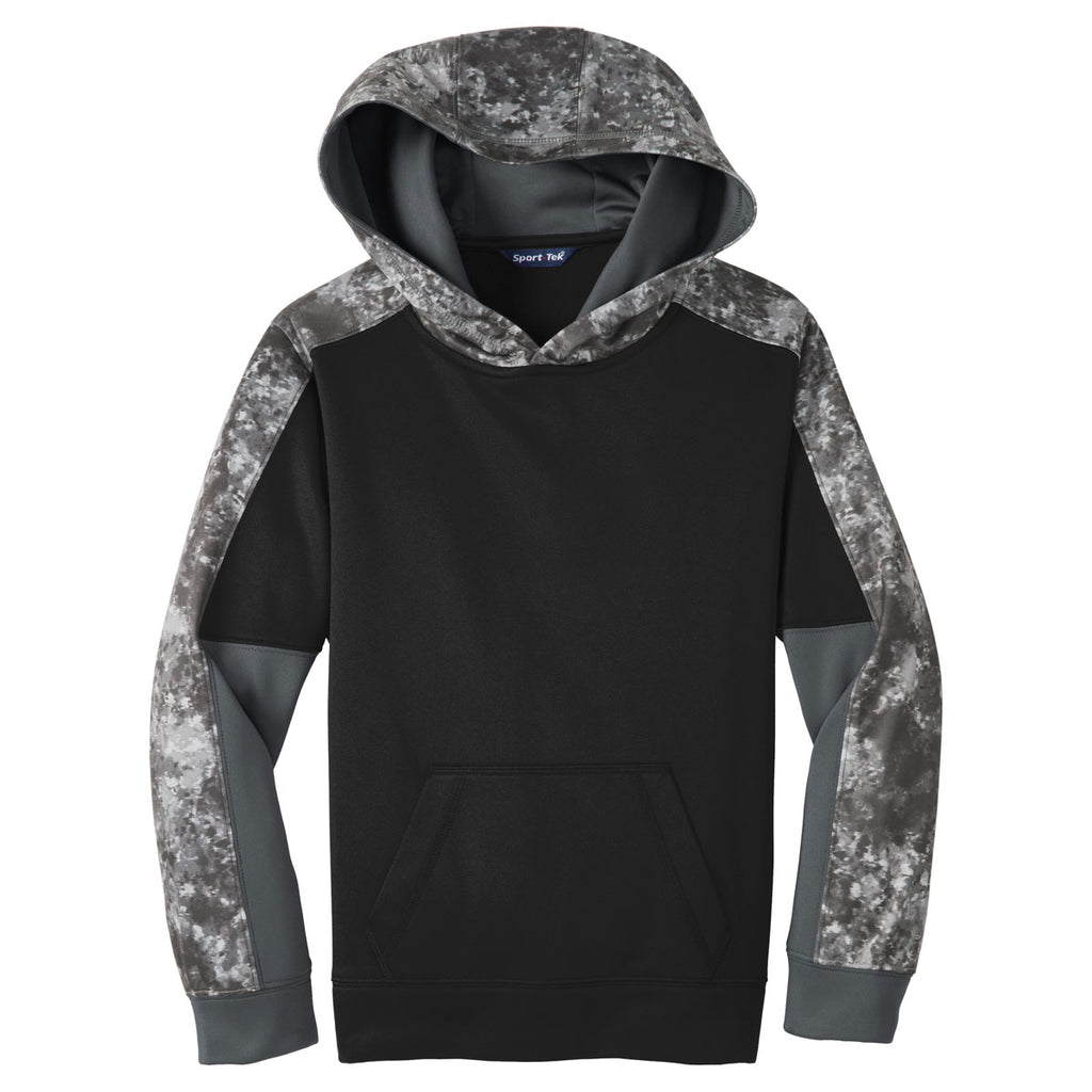 Sport-Tek Youth Black/Black Sport-Wick Mineral Freeze Fleece Colorblock Hooded Pullover