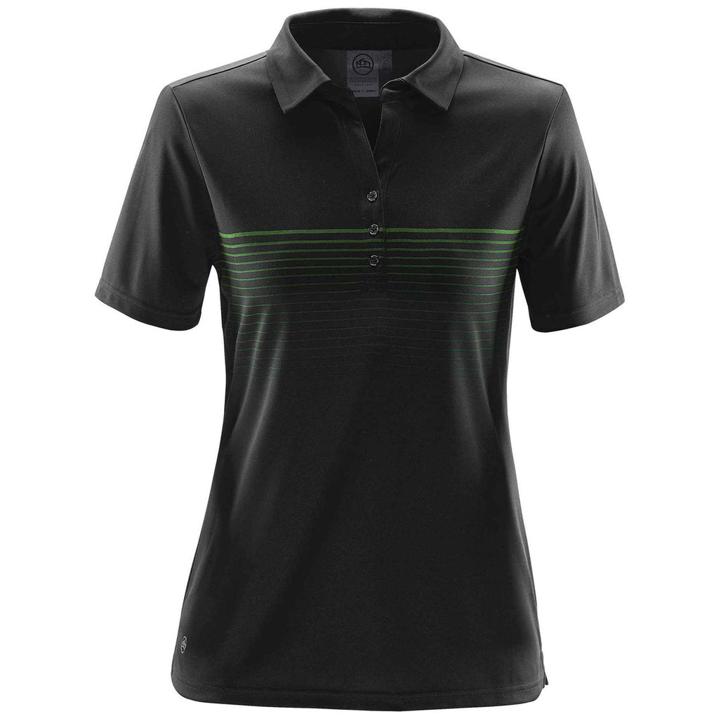 Bring your passion for polos to the table when you order the custom logoed Stormtech Women's Black/Kiwi Wavelength Polo for the new members of your high achieving company team. The snag free fabric prevents the types of rips and tears that diminishes the quality of other styles of polos. Proprietary moisture wicking technology not only makes the polo perfect for wear during sporting competitions, it is also a great shirt to wear for when you perform outdoor home improvement projects. Attach a custom logo on the polo to stand out at the next recruiting event. Low profile sublimated print allows the bold colors of the polo to shine.Highlights