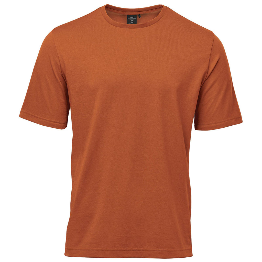 Stormtech Men's Rust Settebello Short Sleeve Tee with a custom logo is a fun and simple way to get noticed. This sustainably sourced tee offers superior softness and durability as you go about your day. Created to transport moisture away from the body, this tee is ideal for busy days at work and play, whether at a trade show or hanging with friends.Corresponding Women's Style: Stormtech Women's Rust Settebello Short Sleeve Tee