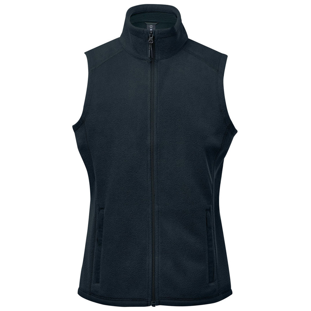 Design a corporate logo for the Stormtech Women's Midnight Montauk Fleece Vest to have your trail guides looking and feeling great. Perfect for guided outdoor adventures, this versatile vest can be used as an inner or outer layer to keep your core warm and comfortable as you enjoy the Great Outdoors.Corresponding Men's Style: Stormtech Men's Midnight Montauk Fleece Vest