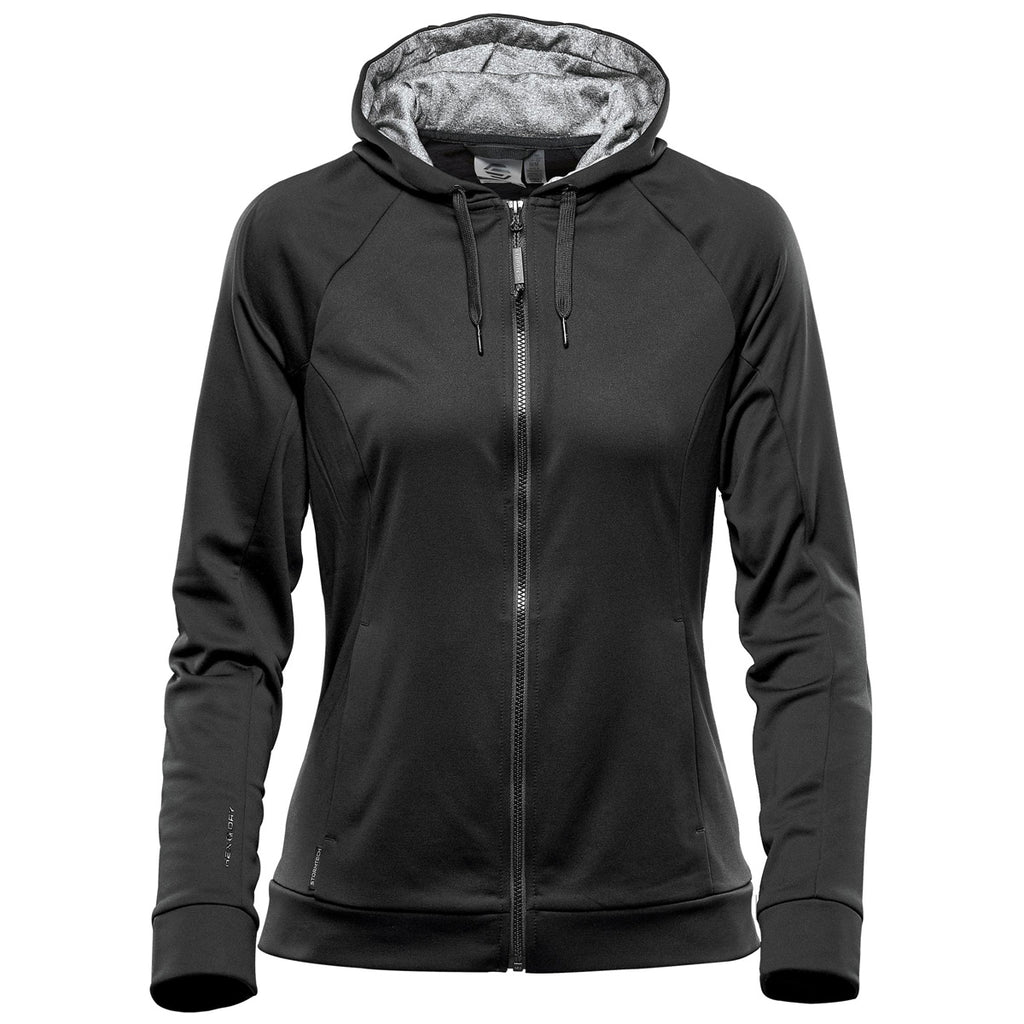 Step up in a custom Stormtech Women's Black Halifax Hoody. This technical hoody is highly versatile and functional with a water-repellant finish, moisture wicking, and a finish that keeps your core warm and dry when cold weather first starts to set in. Add a company logo to offer these as employee gifts or to sale in your logoed apparel line as workout or general wear. The hoody offers a full front zip so it can easily be worn as a hoody or a lightweight jacket while working out as a layering option. Wear to go on a run, to run errands, or on your commute for a relaxed, laid back look that keeps you comfortable.