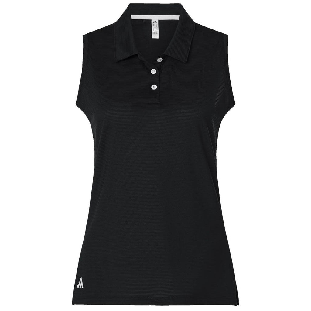 The Adidas Women's Black Ottoman Sleeveless Polo supports embroidery and offers a textured fabric that creates a refined, lightweight feel. Its sleeveless cut ensures easy movement in warm weather, making it ideal for golf, travel, or casual workdays. Buyers appreciate its breathable comfort and flattering silhouette, while organizations value its clean, versatile appearance.