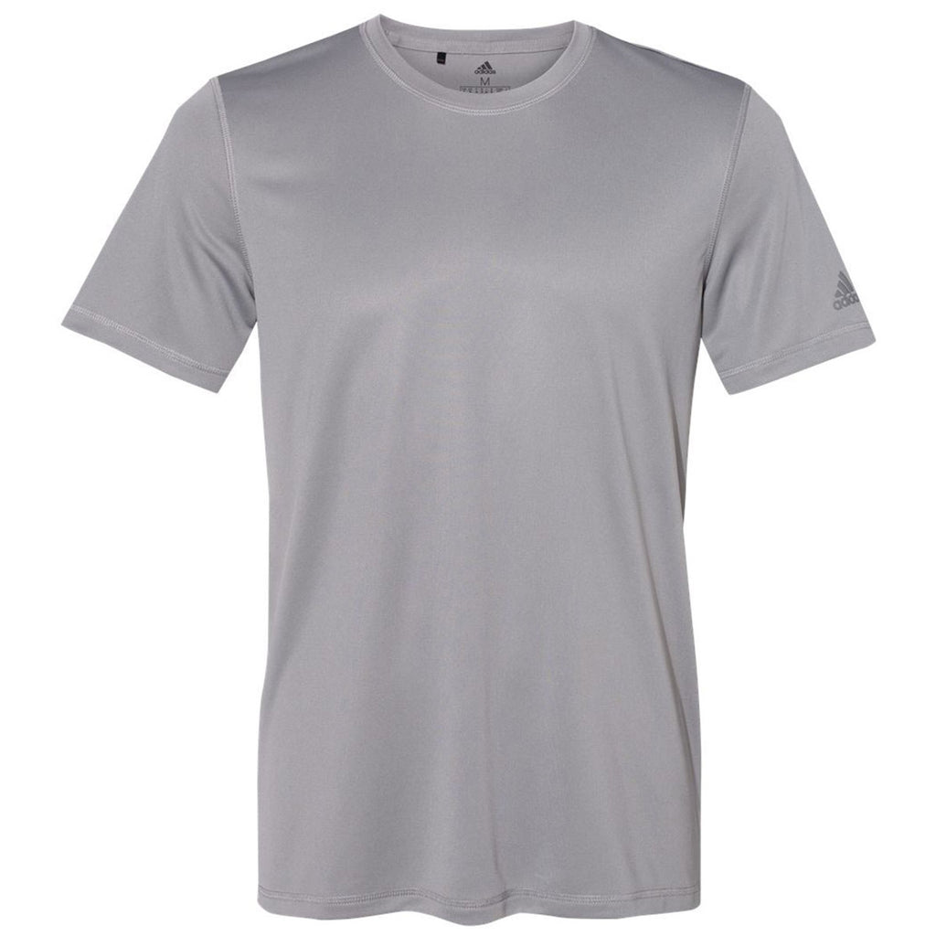 Stay comfortable and look great in a screen print Adidas Men's Grey Three Sport T-Shirt. Ideal for the gym, a day with the family, or a quick round of golf, this 100% recycled polyester pique tee is good for the environment and great for you with UPF 50+ protection. Add a company logo to use these as employee apparel that will stand up to hard work or a corporate logo to use for corporate events as a way to showcase your company or organization. The crewneck design with open hem sleeve is designed for all day comfort whether worn alone or layered for warmth.