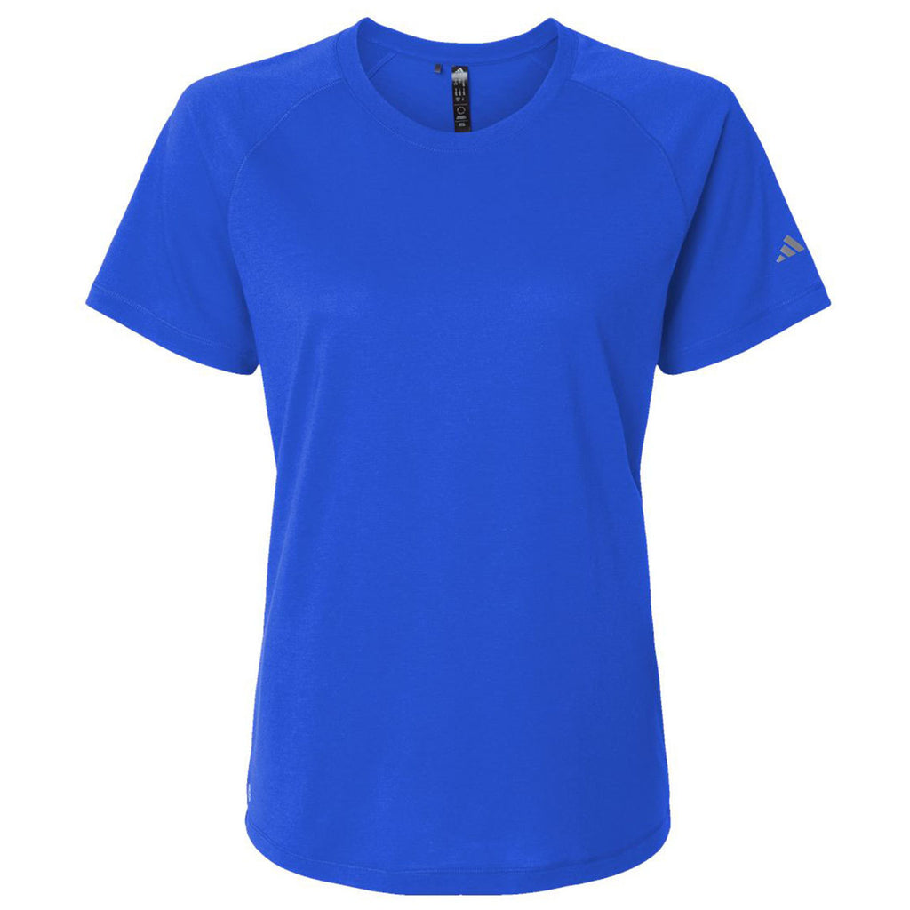 The Adidas Women's Collegiate Royal Blended T-Shirt with a custom logo is a must-have for those who like to relax and have a little fun. The regular-fitting tee is highly versatile and looks great during almost any activity. Made of recycled polyester and cotton, the sustainable tee can serve as brand awareness, team gear, or daily wear with ease.This product cannot ship outside of the United States
