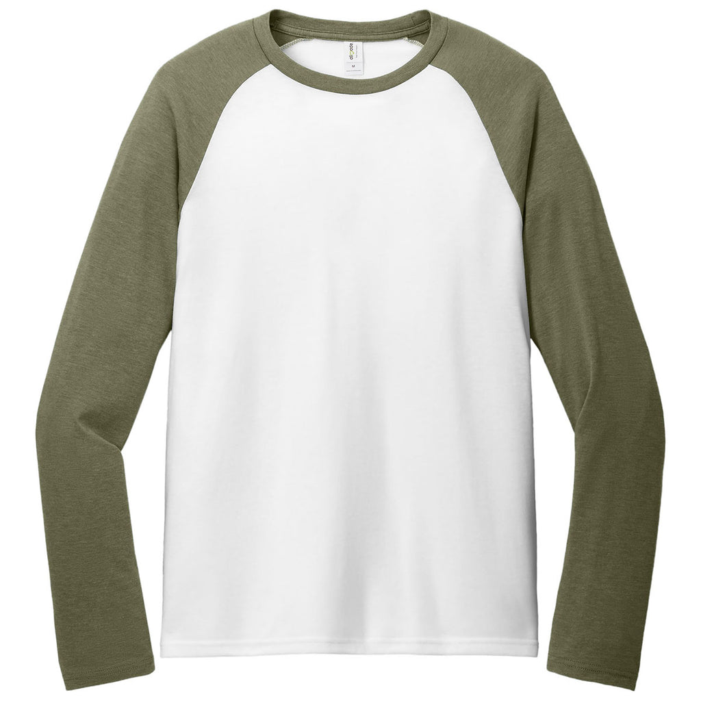 Allmade Unisex Olive You Green/Bright White Tri-Blend Long Sleeve Colorblock Raglan delivers custom style for corporate teams and eco-conscious consumers alike. Its tri-blend fabric feels incredibly soft while holding shape through repeated wear. With its classic raglan design and color block appeal, this tee transitions seamlessly from branded group apparel to casual weekend wear.
