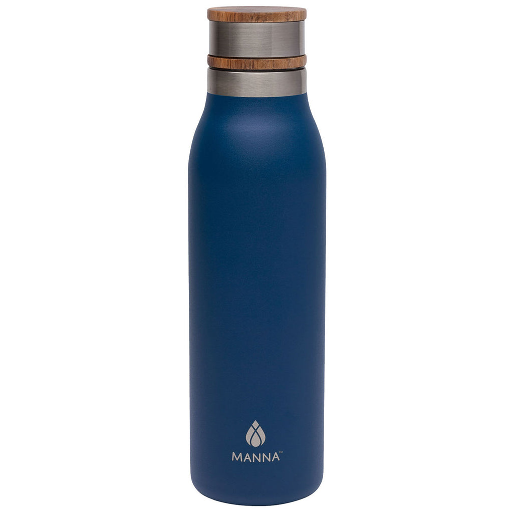 Fashion up the custom Manna Navy Ascend 18 oz. Stainless Steel Water Bottle w/ Acacia Lid with your company logo to create the perfect brand advertisement - add the personalized drinkware to new employee welcome gift packages or use it as an event giveaway for your upcoming recruiting events and trade shows.