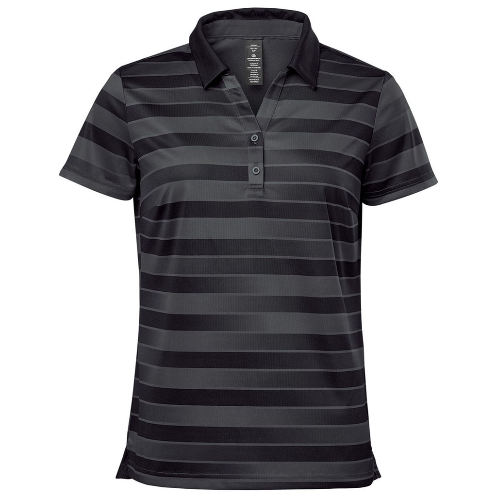 Outfit your team to perfection by adding your company's custom logo or design to the Stormtech Women's Dolphin Sienna Short Sleeve Polo. Covered in a horizontal gradient stripe pattern, this professional polo features H2X-DRY moisture management technology and UPF sun protection, making it perfect for athletes and anyone with an on-the-go lifestyle.