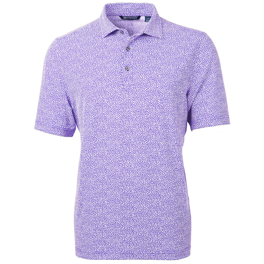 Cutter & Buck Men's College Purple Virtue Eco Pique Botanical Print Recycled Polo