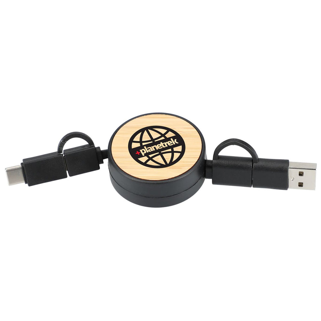 Bullet Black FSC 100% Bamboo Retractable 5-in-1 Charging Cable