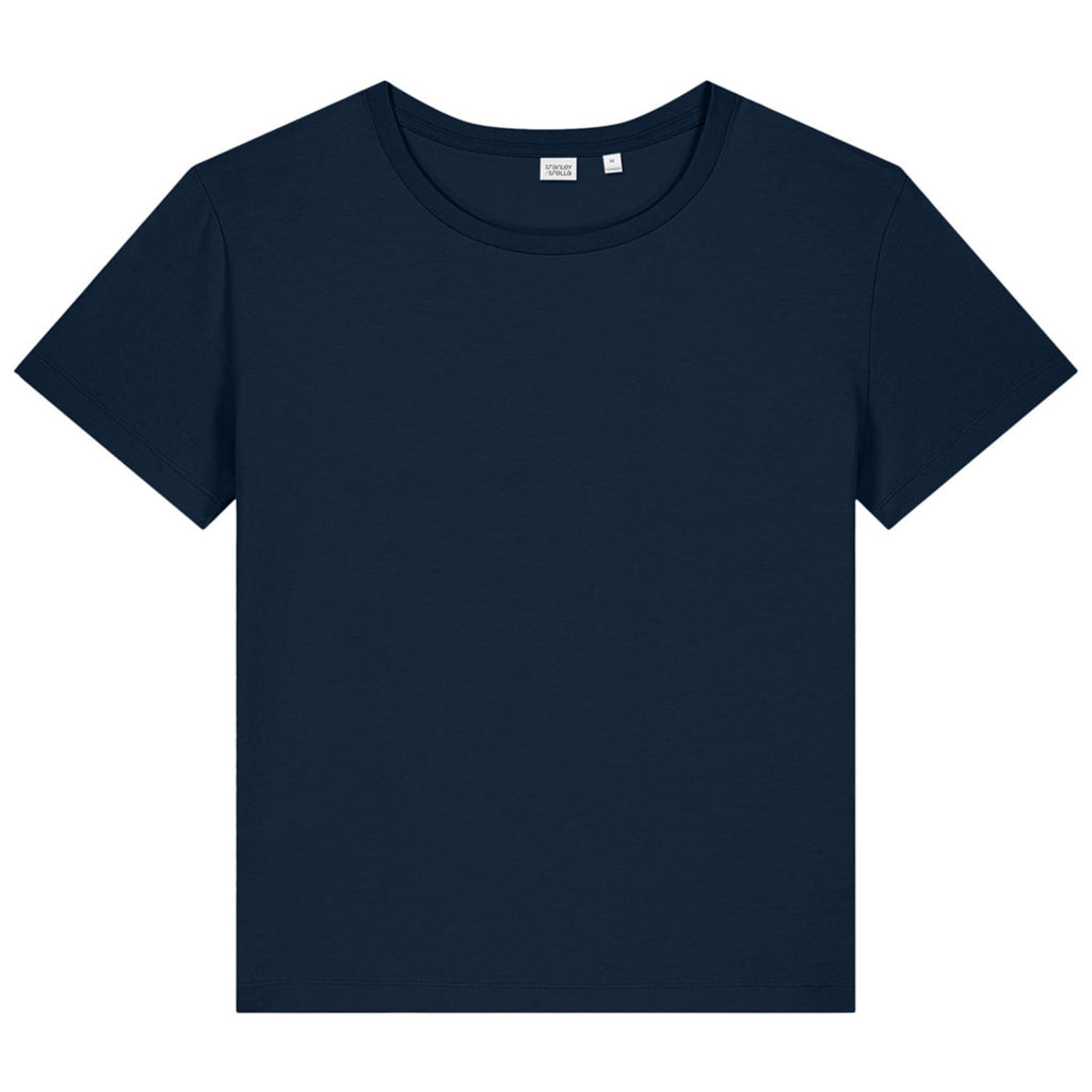 Stanley/Stella Women's French Navy Stella Serena Scoop Neck Tee with a custom print design combines a flattering scoop neckline with the softness of organic cotton. The relaxed fit makes it easy to wear for any occasion, whether at home or out with friends. This tee's eco-friendly material adds an extra layer of appeal, making it an easy choice for those who value sustainability.