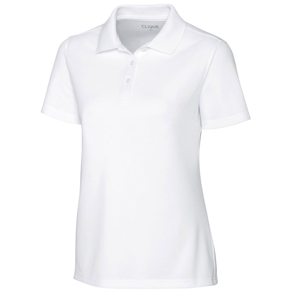 Dazzle your golf partners not only with your game, but also your fine taste in company apparel by wearing the Clique Women's White Spin Pique Polo. Versatile enough to wear at work and after work at your favorite restaurant, the stylish polo includes a large embroidery area for attaching your corporate logo. With a company logo, you stir interest in your products and services at professional networking events. The 100% spin-dye polyester pique polo withstands the punishment delivered by active lifestyles. Forward shoulders complement the rib knit collar to define what elegant, yet functional fashion should look like.Corresponding Men's Style: Clique Men's White Spin Pique Polo