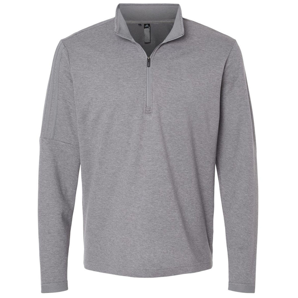 Create a look with a custom Adidas Men's Grey Three Melange 3-Stripes Quarter-Zip Sweater. This upscale sweater offers moisture-management properties and a stand-up collar for that classic look that can truly be appreciated by all. This sweater is perfect for the golf course and the clubhouse after for a drink and snack with friends.This product cannot ship outside of the United States