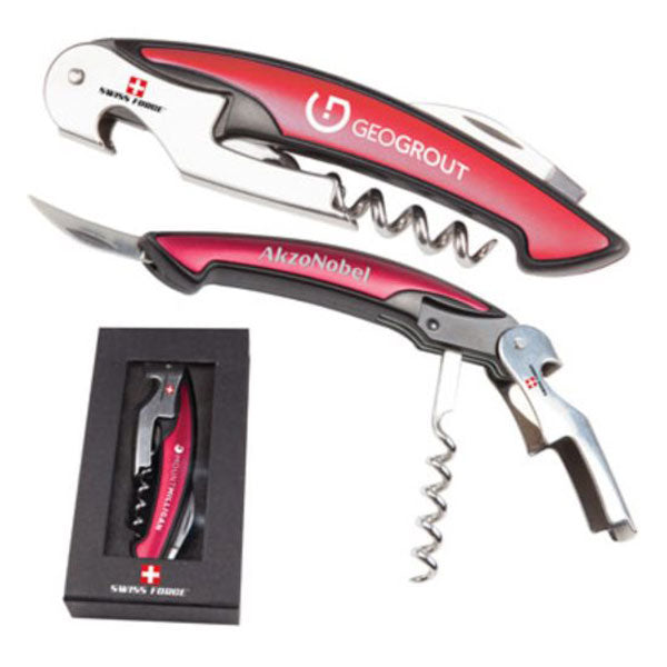 Your company logo on the Swiss Force Red Impressive wine multi-tool transforms it into a practical and classy gift for valued employees, clients, and partners. It has several functions that recipients will appreciate plus the high-quality construction that Swiss Force is known for. Pair it with a bottle of wine for an even more extravagant gift.