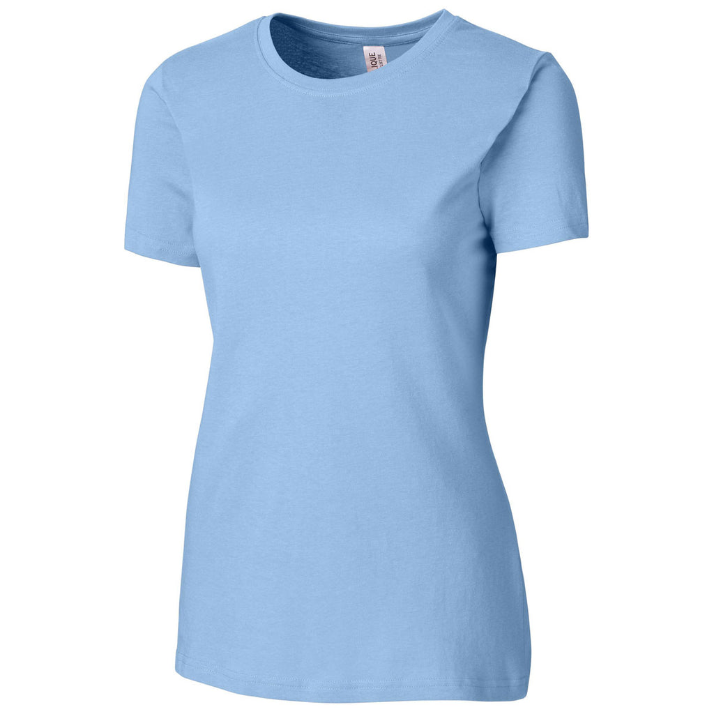 Change how your employees view corporate apparel by giving away the Clique Women's Light Blue Playlist Tee. The stylish tee makes an ideal promotional gift at sales conferences and industry trade shows. Screen print a custom logo on the tee to connect your brand to high quality products and services. Designed with 100% ringspun cotton, the super soft tee delivers optimal comfort throughout a busy day competing in a company sponsored golf tournament. Side seam resist rips and tears to give you a versatile tee to wear at work and play for years to come.Corresponding Men's Style: Clique Men's Light Blue Playlist Tee