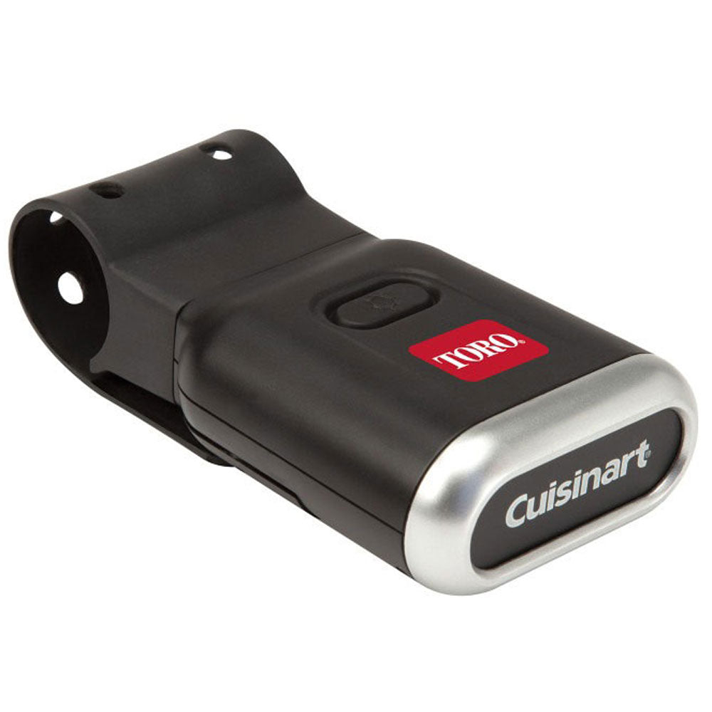 Cuisinart Black Grilluminate Adjustable Handle-Mount Grill Light with custom logo is a fun way to keep the grilling party going after the sun sets. The adjustable handle-mount grill light fits on a portable or full-size grill so you can see your food no matter what time of day or night. The strap is heat resistant and has notches that adjusts easily to provide light so your food will end up just as you wanted. The light turns on and off with a simple press of the button and requires only three AAA batteries. Offer at recruiting events or trade shows to draw attention to your booth or give as an employee gift that can be enjoyed year-round. Place an order today.