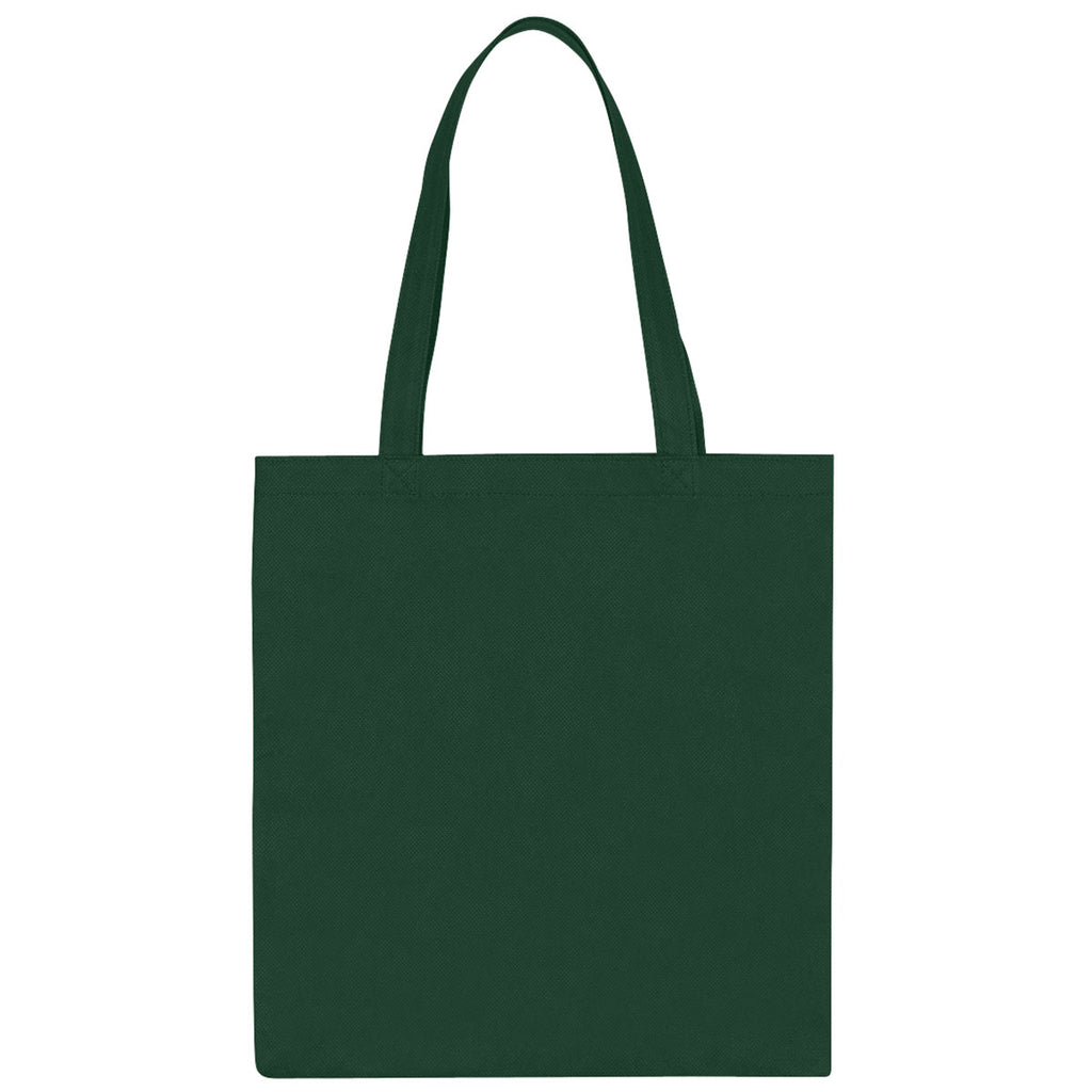 Try a corporate logo on the Hit Forest Green Non-Woven Economy Tote Bag to make carrying items a breeze for your customers and yourself. These thin, foldable totes are great for trade shows and networking events as they easily hold multiple brochures and business cards. Available in a variety of bold colors, your logo will pop.