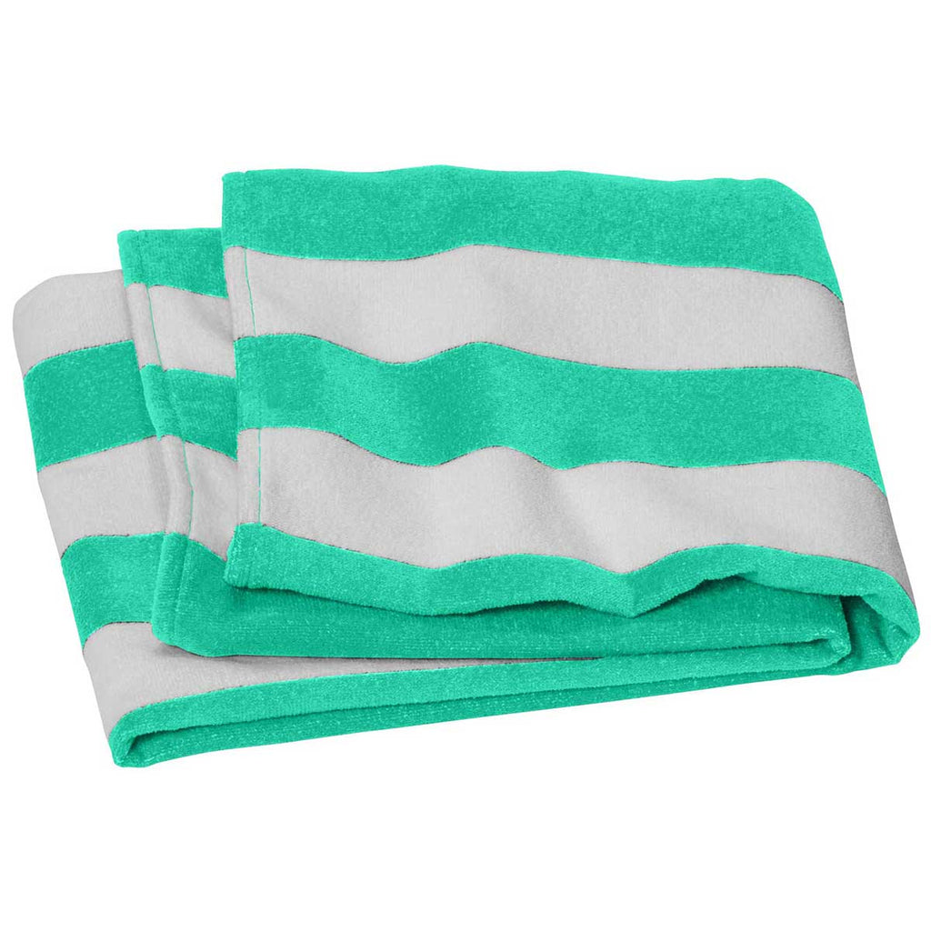 Hit the beach or lay out by the pool in a custom embroidered Port Authority Bright Seafoam Value Cabana Stripe Beach Towel. The bright stripes on this large 30 x 60 inch towel will stand out with your company logo embroidered in the perfect location. Made of 100% USA cotton terry velour, fully hemmed, and with fade resistant stripes this towel makes the perfect employee gift or end of the year gift for those you care for in life. Place an order for several to use at team events for those participating in swim meets or any outdoor activity as additional ground seating. The possibilities are endless for these useful towels.Highlights