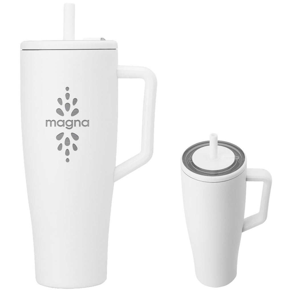 A new Era of straw tumblers is here! Meet the BruMate Matte White Era 40 oz Tumbler is leakproof and made for stress-free sips on the go. The patent pending leakproof straw lid can be easily opened and cleaned. Say goodbye to dirty tumblers. Order this large-capacity bottle for all-day hydration. Now available with a corporate logo.
