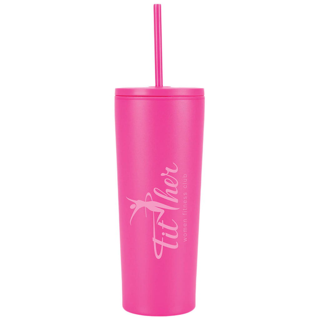 The Logomark Pink Bayard 24 oz. Double Wall Steel/PP Liner Straw Tumbler is a versatile custom drinkware option perfect for on-the-go lifestyles. It features a flip-top lid with a straw, and the double-wall design helps maintain drink temperature. Ideal for gyms, giveaways, or wellness campaigns looking for functional items with bold branding impact.The minimum order for this product is 50 pieces.