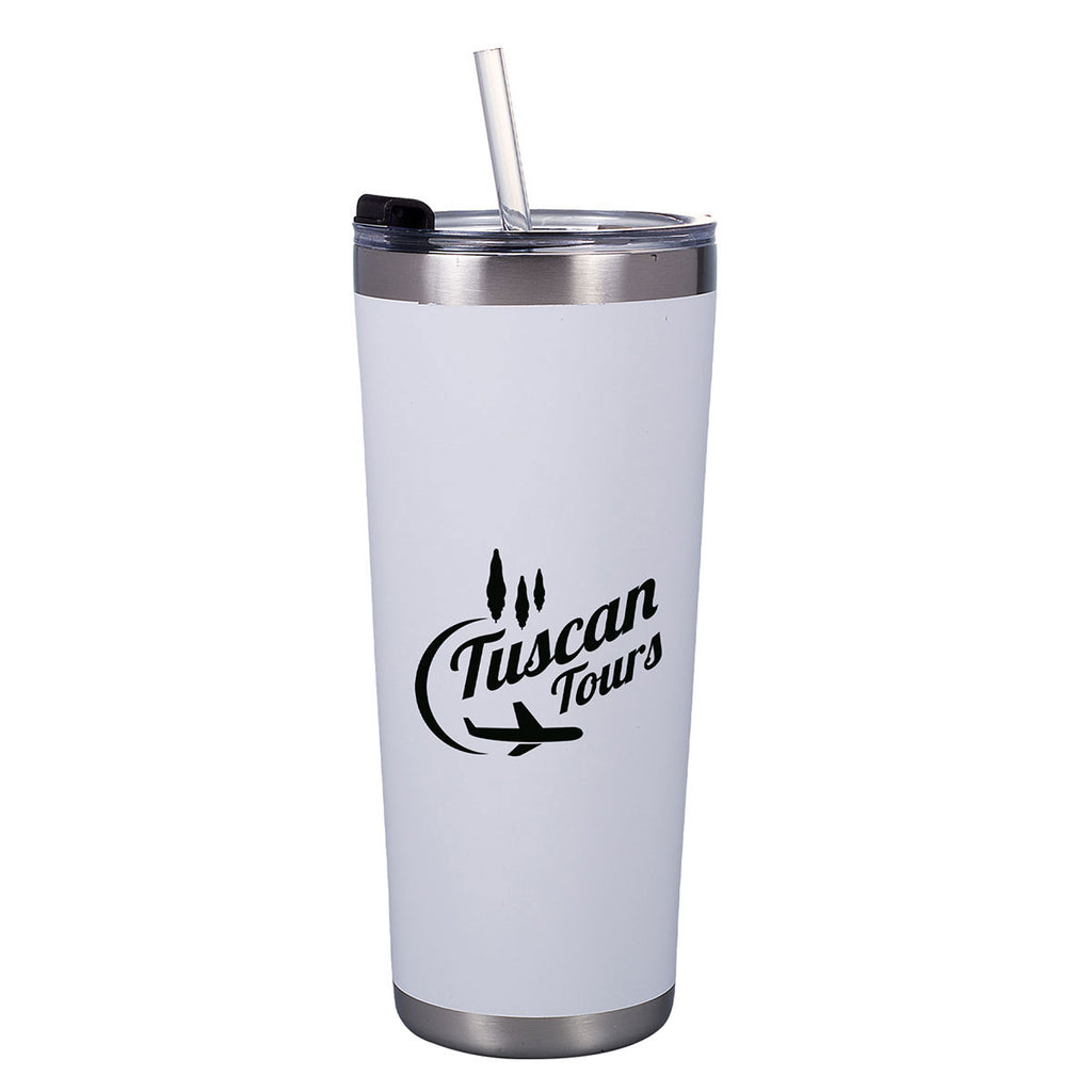A stylish matte finish and bold color options makes the Primeline White 20 oz. All Season Vacuum Tumbler a perfect piece to show off your company's custom printed logo or design. It features double-walled vacuum insulation, which will keep the liquid inside at an ideal temperature all day long.The minimum order for this product is 25 pieces.