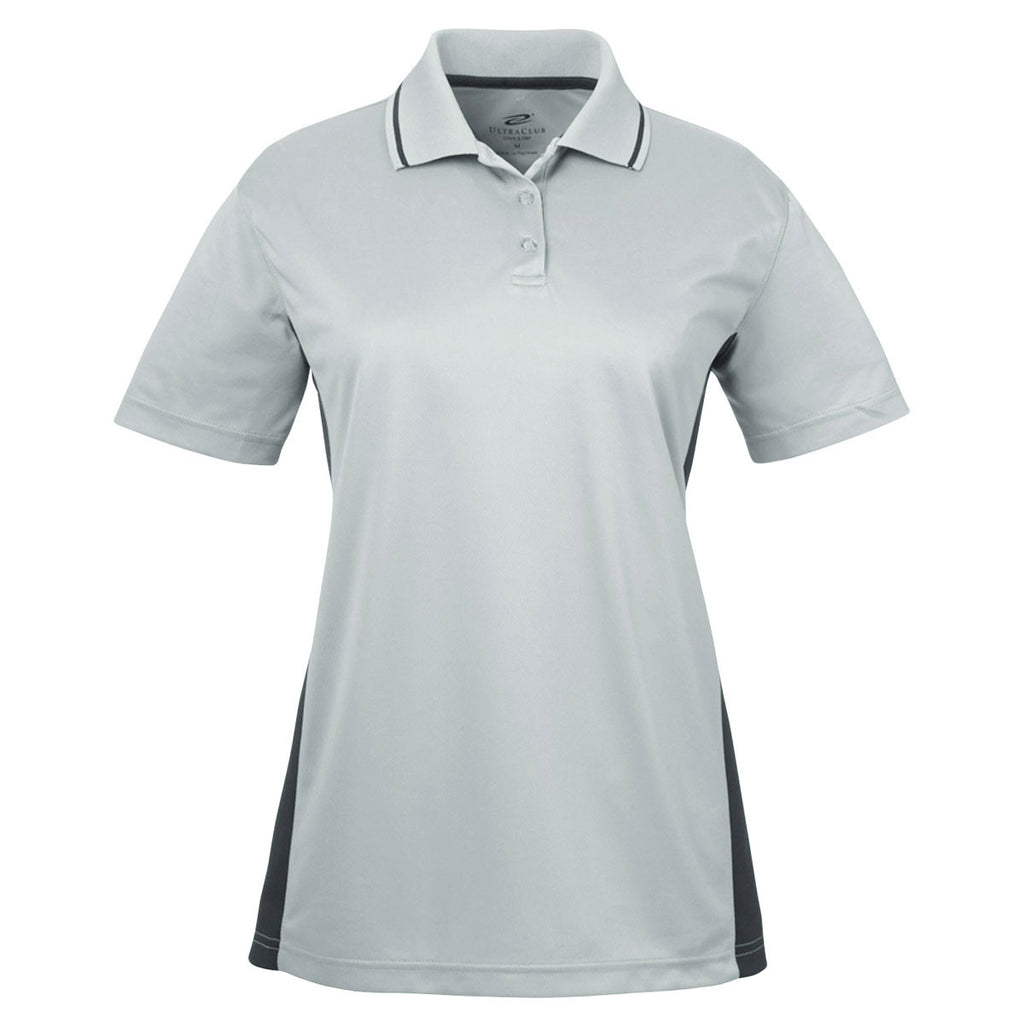 UltraClub Women's Grey/Black Cool & Dry Sport Two-Tone Polo