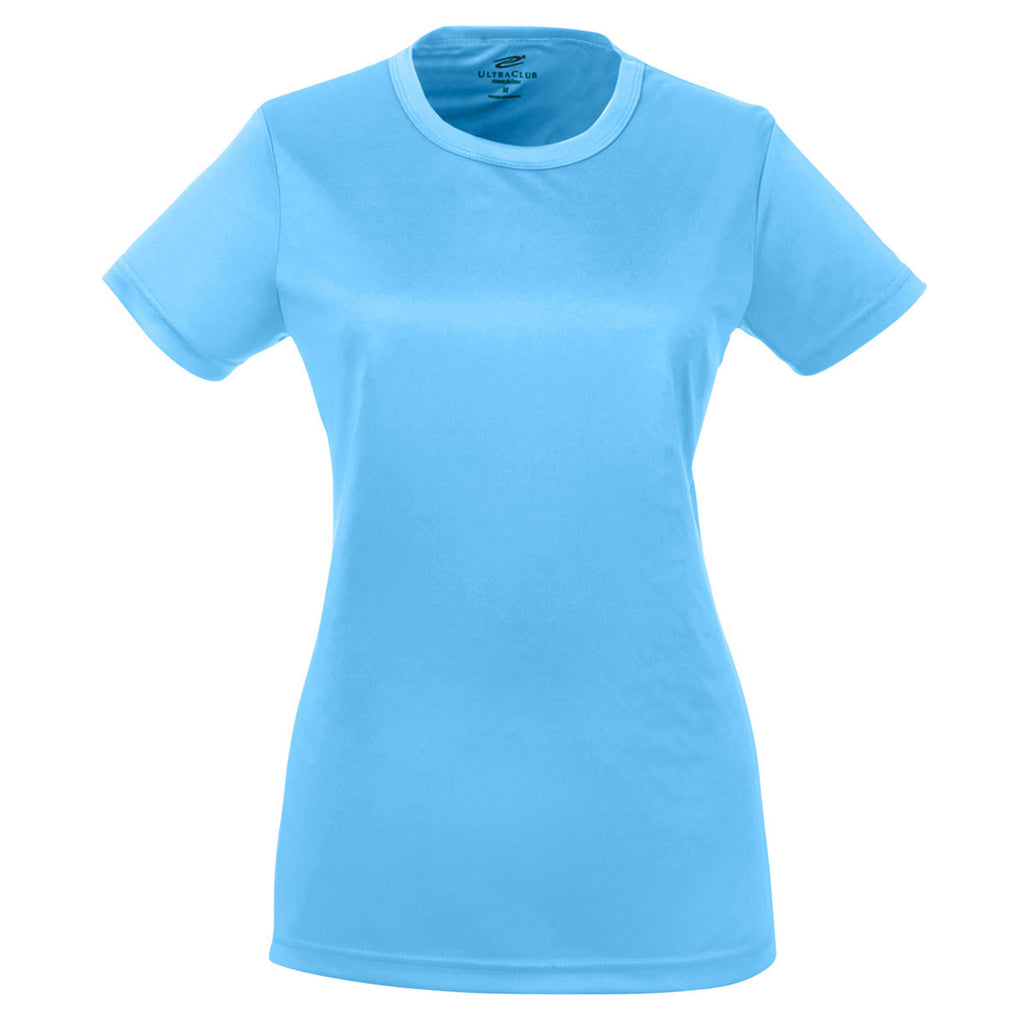 UltraClub Women's Columbia Blue Cool & Dry Sport Performance Interlock T-Shirt