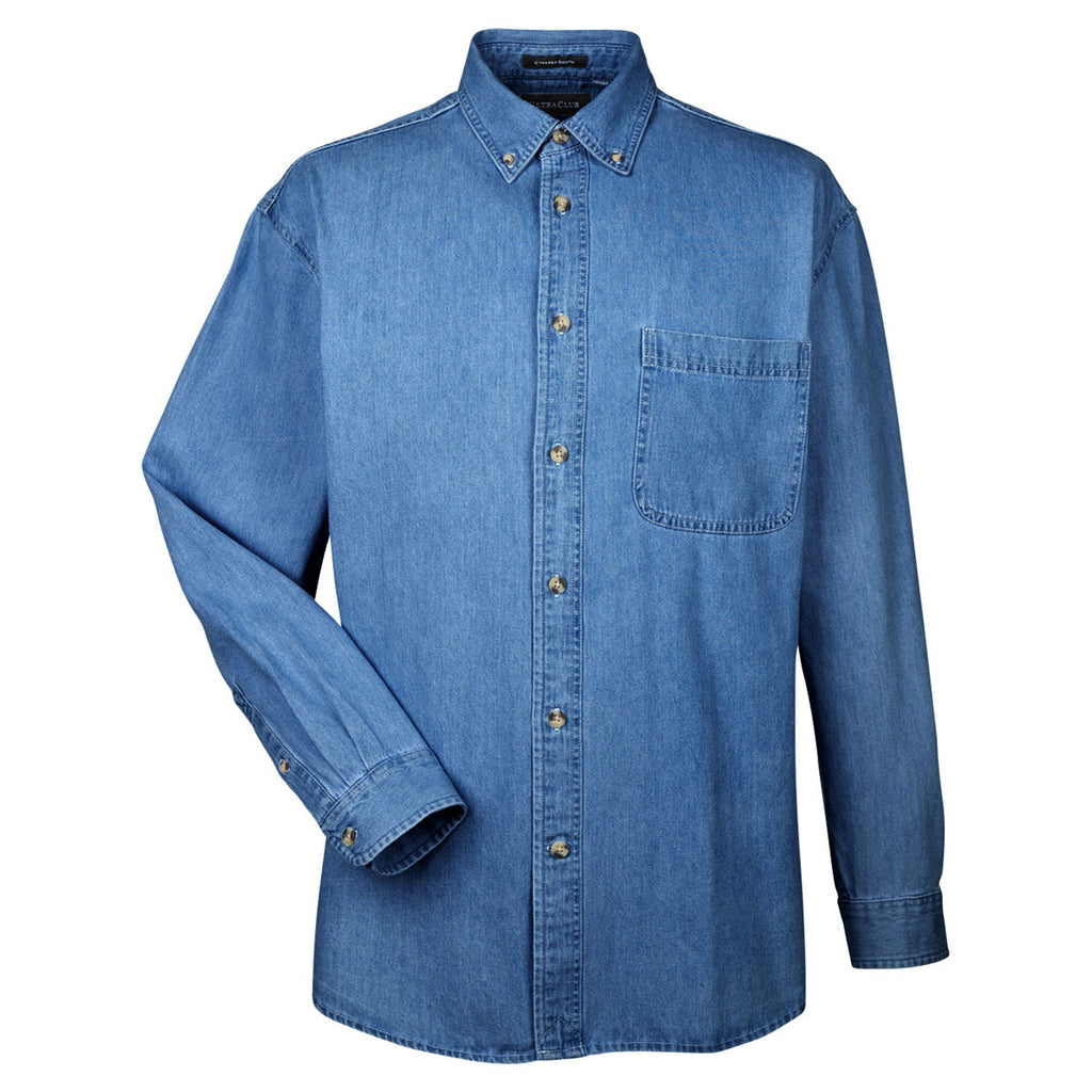 The day long business seminar is right around the corner, and you need to find corporate apparel that makes a lasting impression on your professional peers. Order the UltraClub Men's Indigo Cypress Denim with Pocket for every member of your team to stand out in the seminar room. The sleek button-down collar and wood-tone buttons fashionably complement the double-needle stitching throughout the rugged denim shirt. Super smooth, soft-washed 100 cotton twill offers supreme comfort to get you through the day feeling refreshed. Attach a custom logo to the large imprint area to leave another lasting impression on your professional peers.Corresponding Women's Style: UltraClub Women's Indigo Cypress Denim