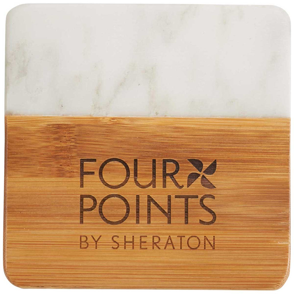 Looking for unique logoed event giveaways? The Leed's Natural/White Marble and Bamboo Coaster Set in this collection is just about what you need. All four coasters in this set can be refashioned to showcase your custom logo or name - just let us know, and we'll engrave your message on the wood panels to create a strong, professional-looking advertisement of your brand. These trendy coasters are also perfect as souvenirs for trade shows, recruiting events and the like.The minimum order for this product is 48 pieces.