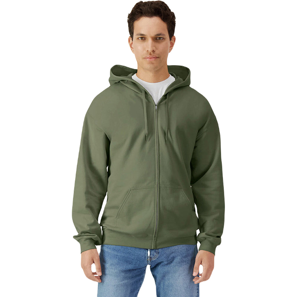 Get active with custom embroidery on the Gildan Unisex Military Green Softstyle Fleece Hooded Sweatshirt. This full-zip hooded sweatshirt is great as an outer layer when jogging, working out, doing chores, or just chilling with friends. The classic fit and seamless body will make this an instant favorite. Place an order before these sell out.Highlights