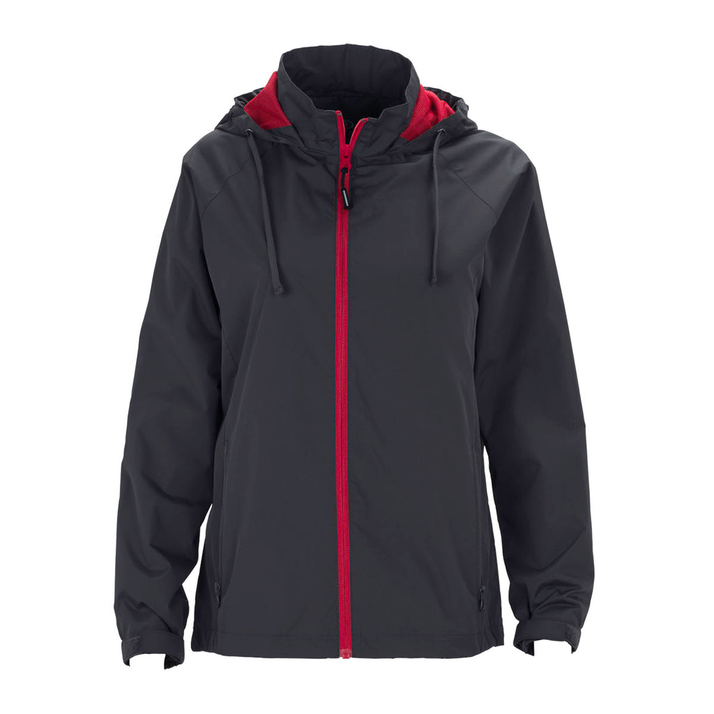 When it rains, it does not pour, as the company logoed Vantage Women's Dark Grey/Sport Red Club Jacket keeps your body dry. The water repellent finish applied to the micro-poplin exterior of the jacket forces raindrops to slide off the surface. Contrasting mesh in the main section of the jacket circulates air to cool the body when the temperature rises. The lightweight corporate apparel contains highly durable polyester that handles everything the great outdoors throws at it. Hood lining traps heat to ensure your neck and head remain warm. Attach your corporate logo on the large imprint area to give your company more clout in the community.Corresponding Men's Style: Vantage Men's Dark Grey/Sport Red Club Jacket