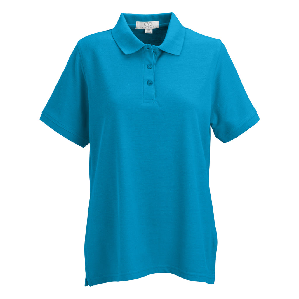 Vantage Women's Island Blue Soft-Blend Double-Tuck Pique Polo