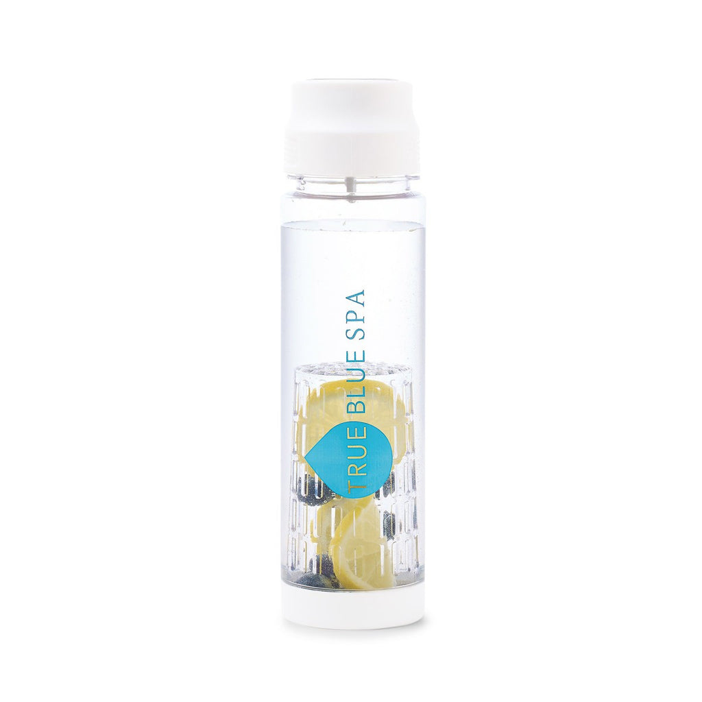Simply twist the lid off to clean inside of the Gemline White Lani Tritan Infuser Bottle 24oz. The leak resistant design prevents cold beverages from ruining car seats and floorboards. Slide and lock the lid for easy drinking during morning and evening commutes. Infuse your favorite beverage with nutritious fruit and vegetable juices. Remove the easy to detach filter cage to ensure pure tasting beverages. The carry loop creates hands free movement, which matters for hikers and cyclists. Rugged Eastman Tritan copolyester produces a long lasting beverage bottle. Add your company logo to create an effective promotional gift.