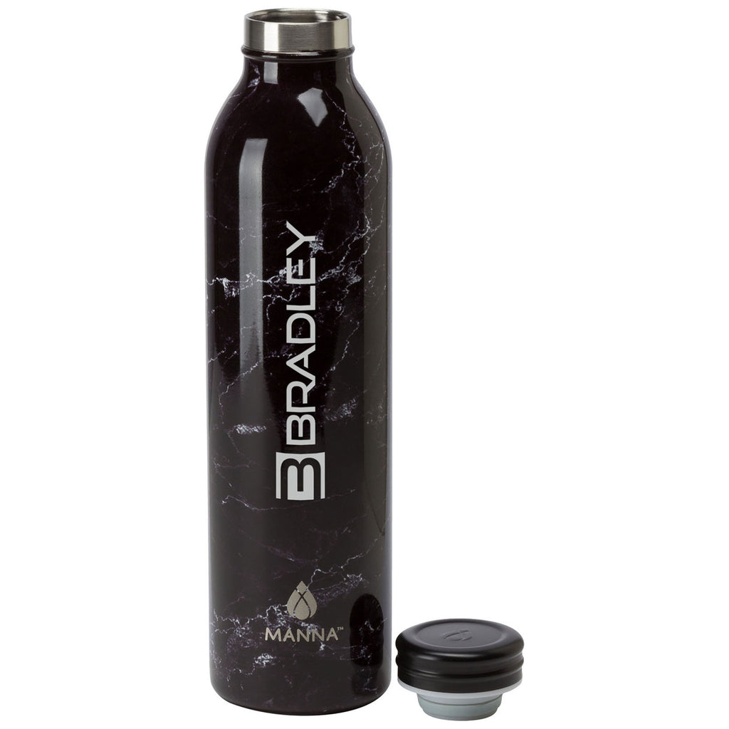 Taking on a classic look, the custom Manna Black 20 oz. Retro Stainless Steel Water Bottle has a style that you'll definitely love. Sport it in the office or when you're out for a grind at the gym - grab this bottle on the go to cover up your hydration needs. This cool drinkware piece will also be a great event giveaway for your trade shows, recruiting events and more - complete the look with your company logo.