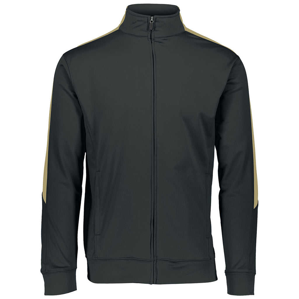 Augusta Sportswear Men's Black/Vegas Gold Medalist Jacket 2.0 will carry your custom logo like a winner. The high collar full-zip has a partial stripe down each sleeve for flair. Add a corporate logo to give as gifts or incentives to get or stay healthy as a company. Great for workouts, daily wear, or just to stay warm on a chilly day. Place an order today.Highlights
