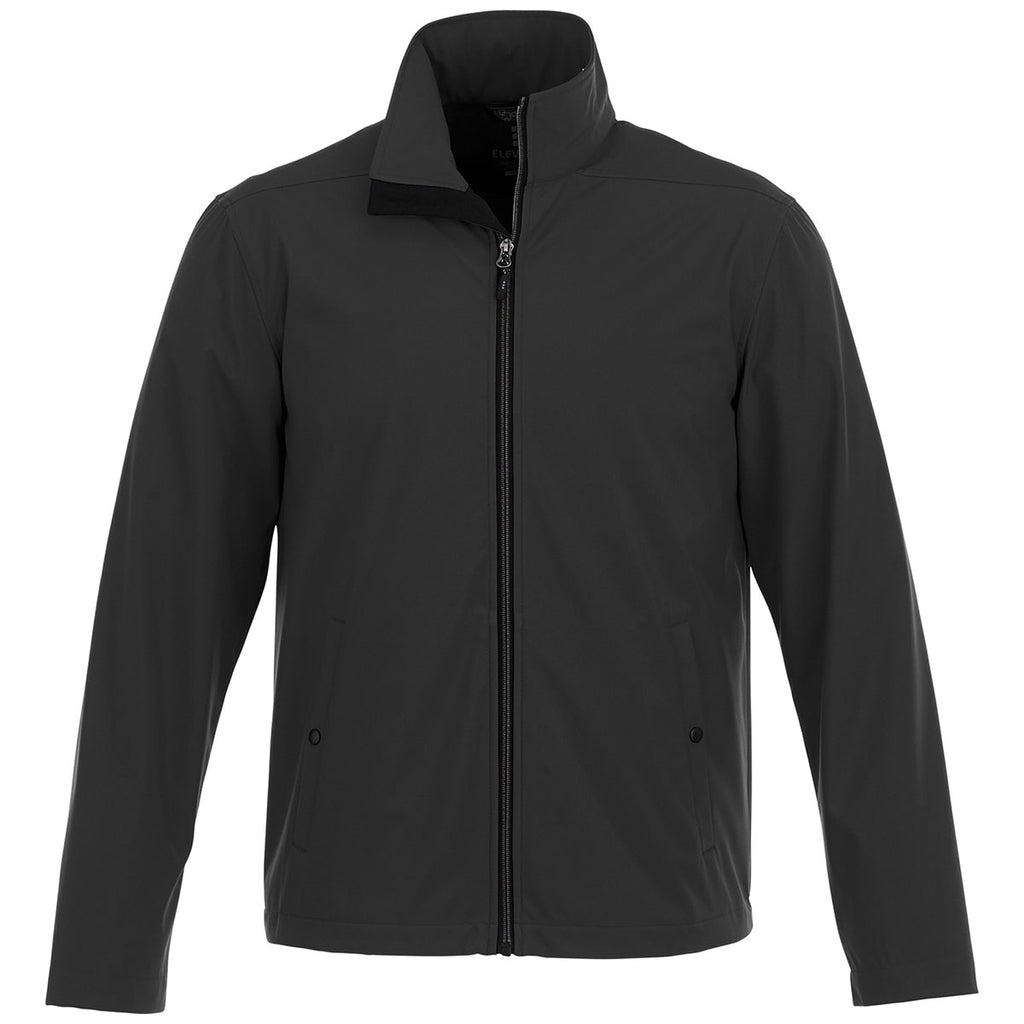 The custom logo Elevate Men's Black Karmine Softshell Jacket is casual chic outerwear, available in six different eye-catching colors. Features of this logoed jacket include zipper front, two exterior pockets with snaps, water-repellent finish, articulated elbows and ergonomic sleeves, to name a few of its enticing offerings. Order these jackets in bulk to hand out to your loyal employees for a job well done or bring these outerwear items with you to your next corporate event, such as recruiting events or golf events, to distribute as giveaway gifts. The lucky recipient will not only enjoy wearing the jacket, but your company name will also be front and center every time they wear it.Corresponding Women's Style: Elevate Women's Black Karmine Softshell Jacket