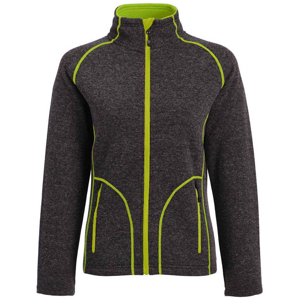 When you pack corporate attire for the next business trip, make sure to include the embroidered Landway Women's Lime Metro Bonded Fleece. Designed with premium heathered fleece, the sleek bonded fleece corporate apparel contains a tricot lined inner collar that offers supreme comfort for the neck and shoulders. Two zippered side pockets provide plenty of storage space for important business accessories. Contrast cover stitching detail will have everyone you pass at crowded airport concourses perform double takes. Add your company logo on the large imprint area to leave a memorable impression on fellow business travelers.Corresponding Men's Style: Landway Men's Lime Metro Bonded Fleece